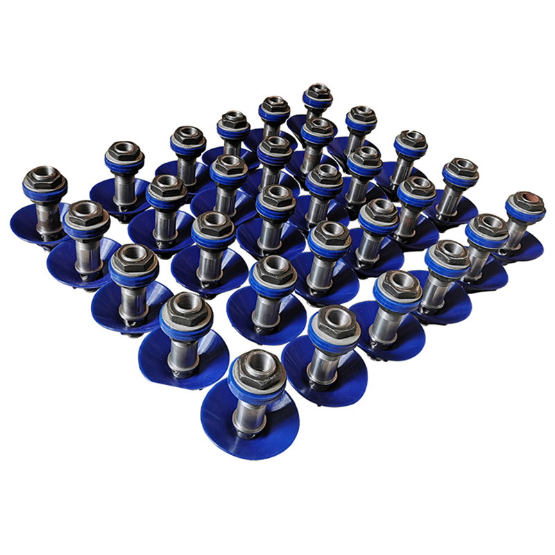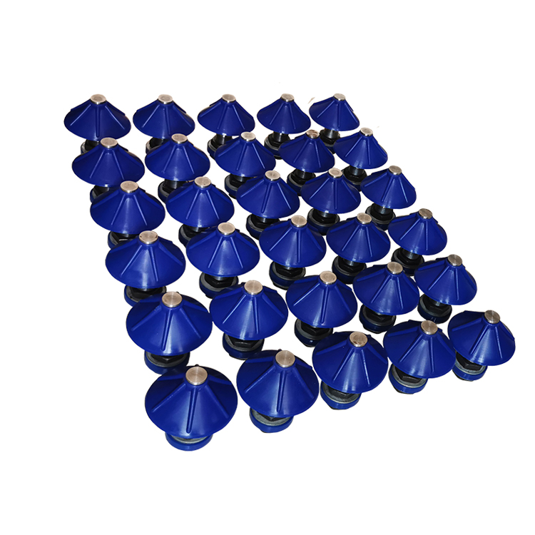 底部流化組件其結構相對比較簡單,他各個元件主要是在現場進行安裝、密封用的。底部流化組件其實就是一個流化的作用,什麽叫做流化呢,其實很簡單即當固體顆粒在接觸作用下表現出類似流體狀態的現象稱為流態化,也就是流化。流化組件大概有流化杆、流化傘帽、固定螺栓、防鬆膠墊組成,流化杆通常材質為碳鋼,其根據圖紙進行精密加工後與其它零件配套使用。其中流化傘帽、防鬆膠墊屬於橡膠材質,進口矽膠材質經過特殊處理加工,其耐溫可達到300℃左右,能夠有效地防治高溫的侵擾。